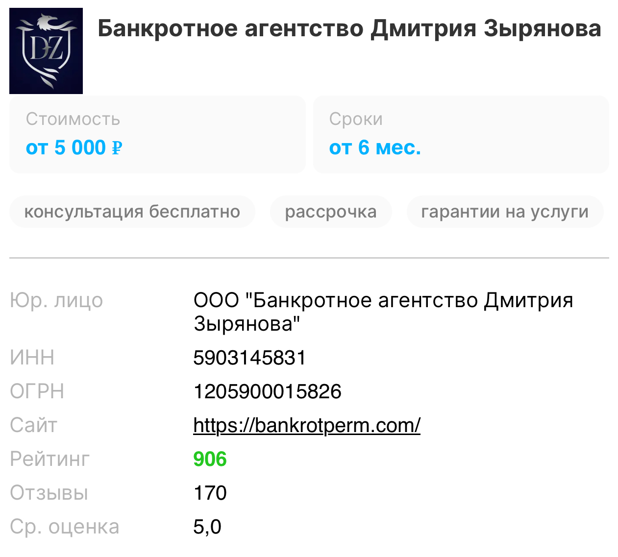 Юридическая компания «Банкротное агентство Дмитрия Зырянова» предлагает жителям города Пермь и Пермского Края услуги по списанию долгов, кредитов и налогов с гарантией. За время работы компании ее специалистами было завершено более 500 банкротных дел в пользу клиентов. Специалисты компании берут в работу только дела, в положительном результате которых они уверены.